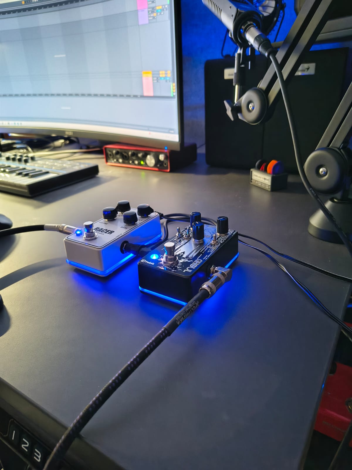 Ve studiu jsou k dispozici kytarové lampové (Rivera KR 100, Engl Blackmore Sig), tranzistorové (Hughes Kettner Black spirit) i digitální kytarové aparáty (Kemper, Hotone Ampero 2) vč. boxů 4x12, 2x12, 1x12 s různými typy repro (Celestion V30, Fane F70, Hiwatt, Celestion G12T-75). Dále je možné využít pedály a výrobky firem KHDK, MH Pedals, DefectsFxPedals, Digitech, Electro-Harmonix, Dunlop, Two Notes, Planet Waves, Valbruch, Ibanez...